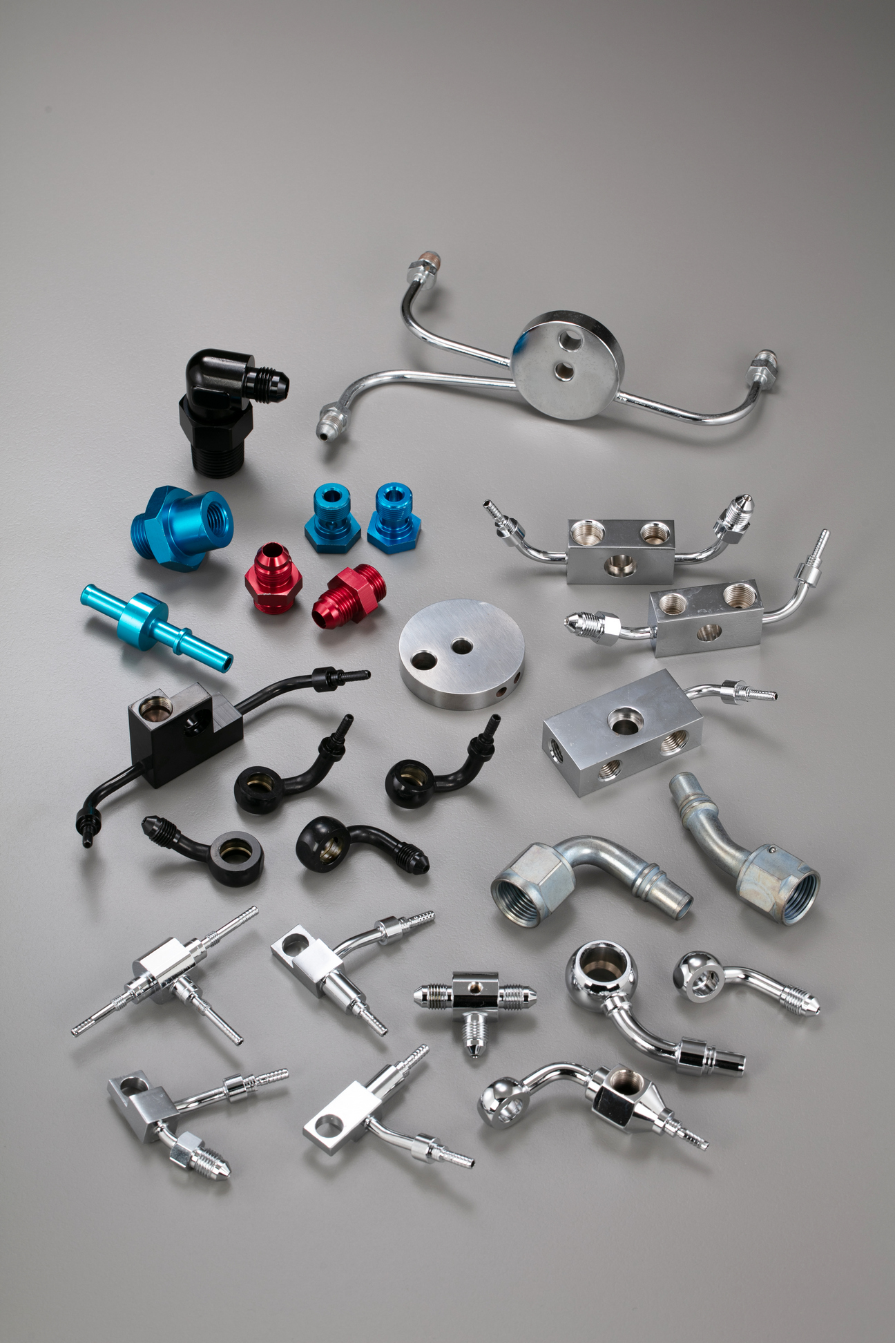 如刹车配件、空油压接头、铁接头、不锈钢接头、油管零组件、铝接头等。